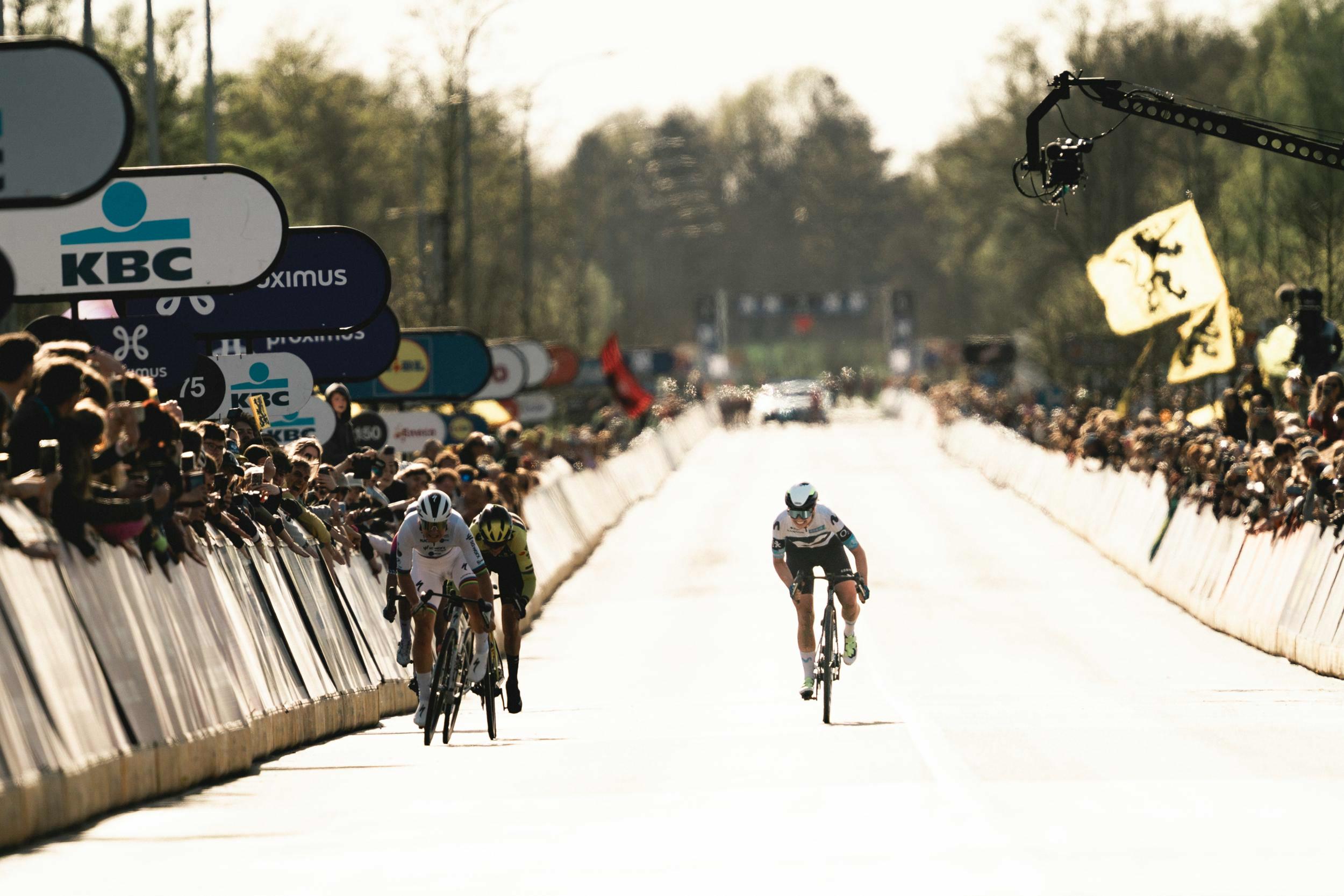 Lotte Kopecky has claimed her third victory in the Tour of Flanders. She accelerated on the Oude Kwaremont, creating a leading group of four that rode together to Oudenaarde. In the sprint, she beat Pauline Ferrand-Prévot, Liane Lippert, and Katarzyna Niewiadoma. With this new win in Flanders’ Finest, Kopecky crowns herself the sole record holder.