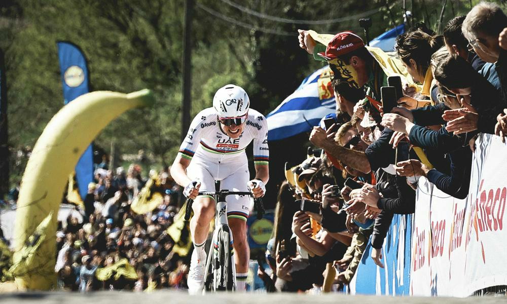 Wereldkampioen Tadej Pogačar heeft zijn krachttoer in de Ronde van Vlaanderen afgerond met een indrukwekkende solo. De Sloveen bestookte de concurrentie met een spervuur aan aanvallen. Met een ultieme versnelling op de derde keer Oude Kwaremont deed hij Van der Poel en co de das om. Pedersen en Van der Poel sprintten naar plek 2 en 3, Van Aert viel net naast het podium.